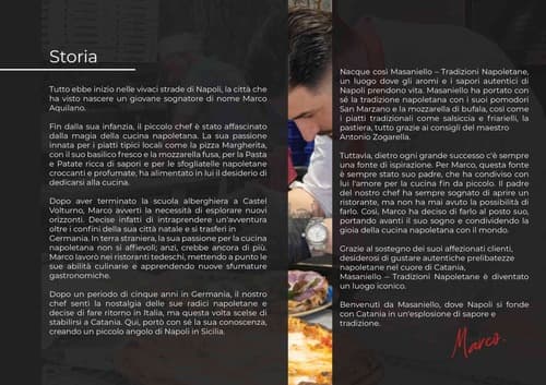 L’autentica Tradizione Napoletana firmata dallo Chef e Pizzaiolo “Marco Aquilano”. Gusta la vera Pizza Napoletana, i primi piatti di terra e di mare della Cucina Napoletana e i nostri Cocktail d’autore. Qualità e Passione, Napoli, nel cuore di Catania.